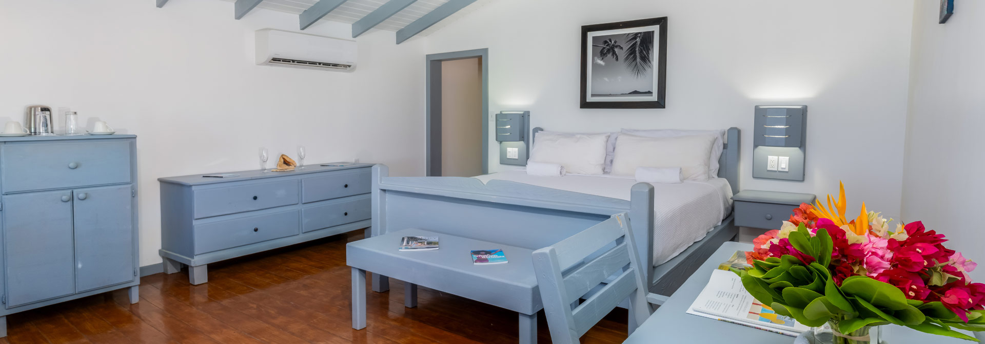 A small collection of simple, rustic cabins situated on pristine Turners Beach on the Southwestern coast of Antigua. All units are fully air conditioned and include the basic hotel room amenities. When not enjoying the beach or your private outdoor Caribbean Beach Bed, you can savor great meals and cocktails at Julia’s On The Beach, our onsite restaurant and bar. Non-motorized water sports and a quirky boat shaped plunge pool are also available. At Conch Cabins, we cater for beach loving travelers seeking private, laid back and affordable oceanfront accommodations. Ideally, you also enjoy a semi-outdoors, adventurous vacation lifestyle. We accept adults and children 12 years or older.